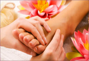 The pedicure is the same treatment as the hands, but for the feet. Again, it involves soaking the feet, filing and shaping the nails, ex-foliating, applying lotion massage, nail polish and finish.